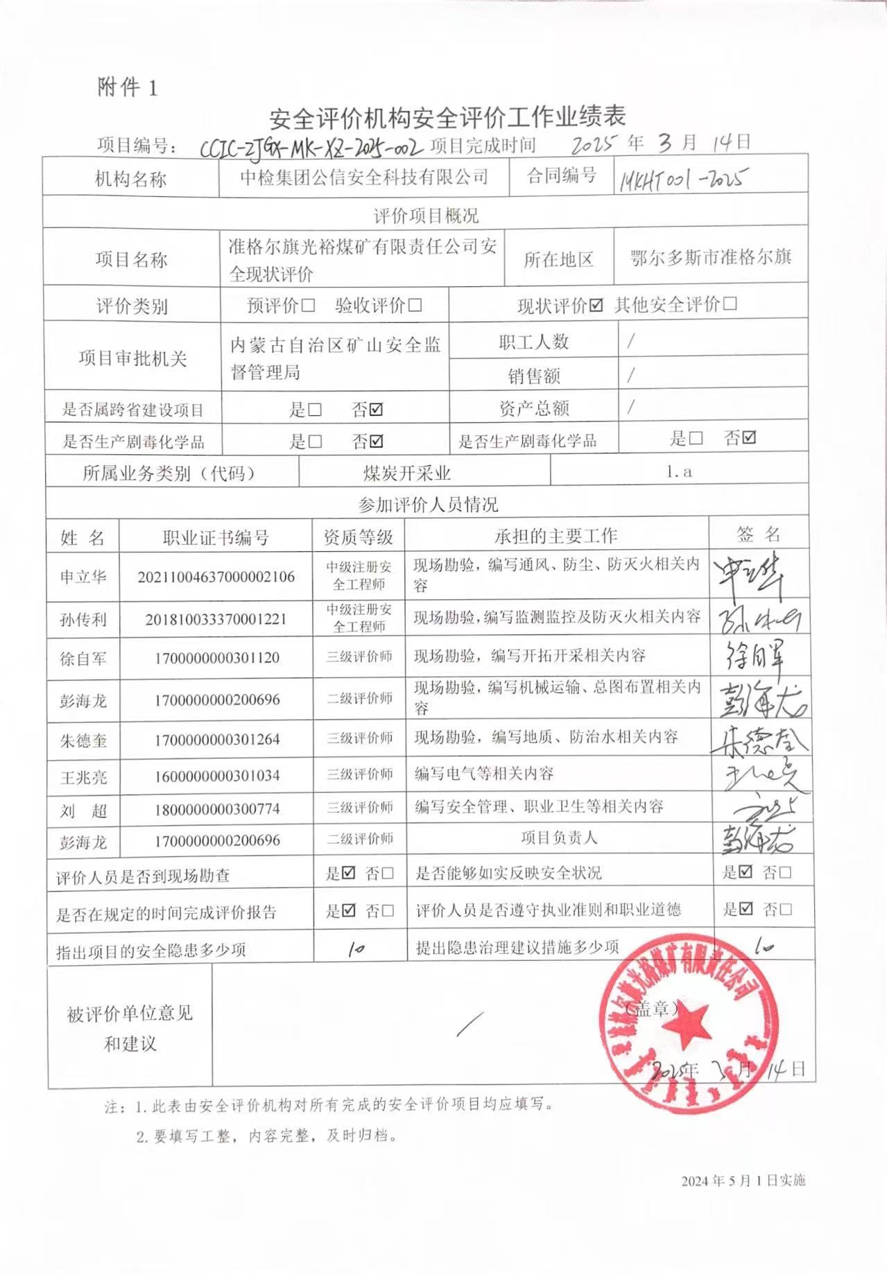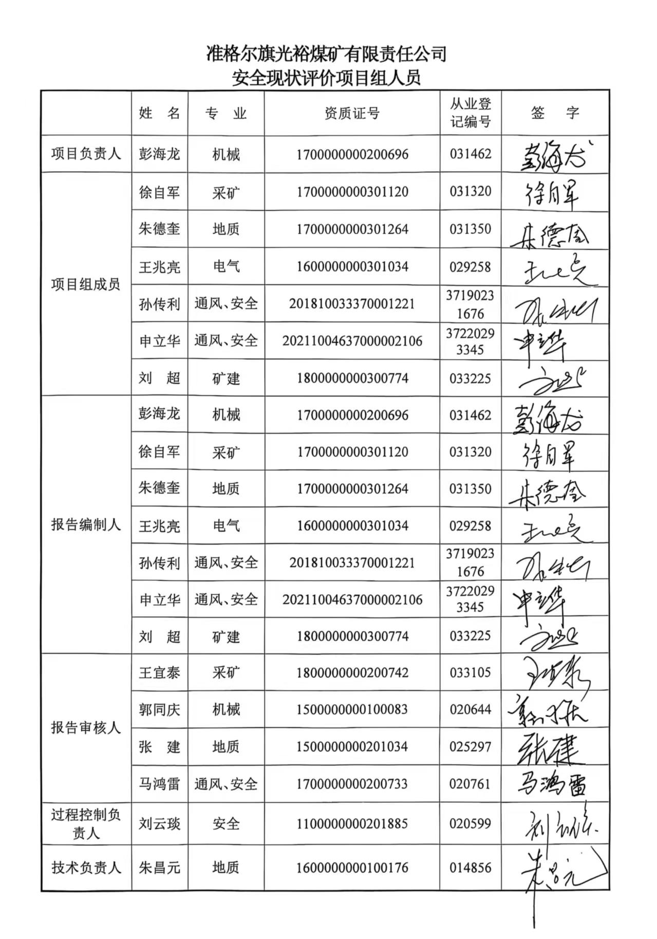 準(zhǔn)格爾旗光裕煤礦有限責(zé)任公司安全現(xiàn)狀評價(jià)報(bào)告 | ||||||